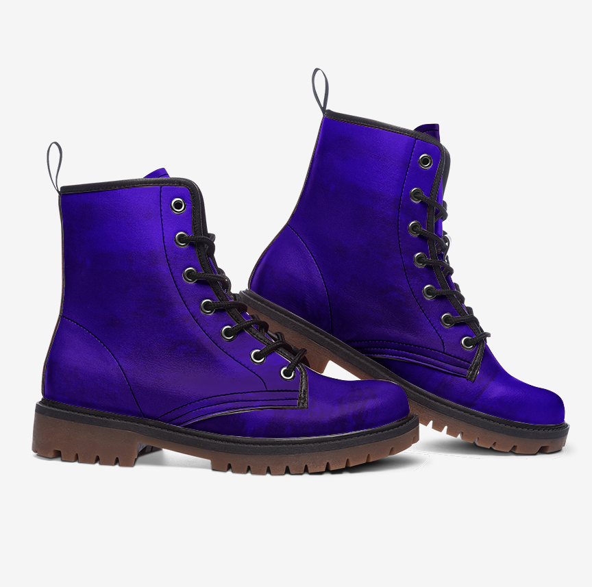 Step into standout style with these Electric Amethyst Combat Boots. A vibrant violet hue meets rugged charm — perfect for bold personalities and fearless fashion.